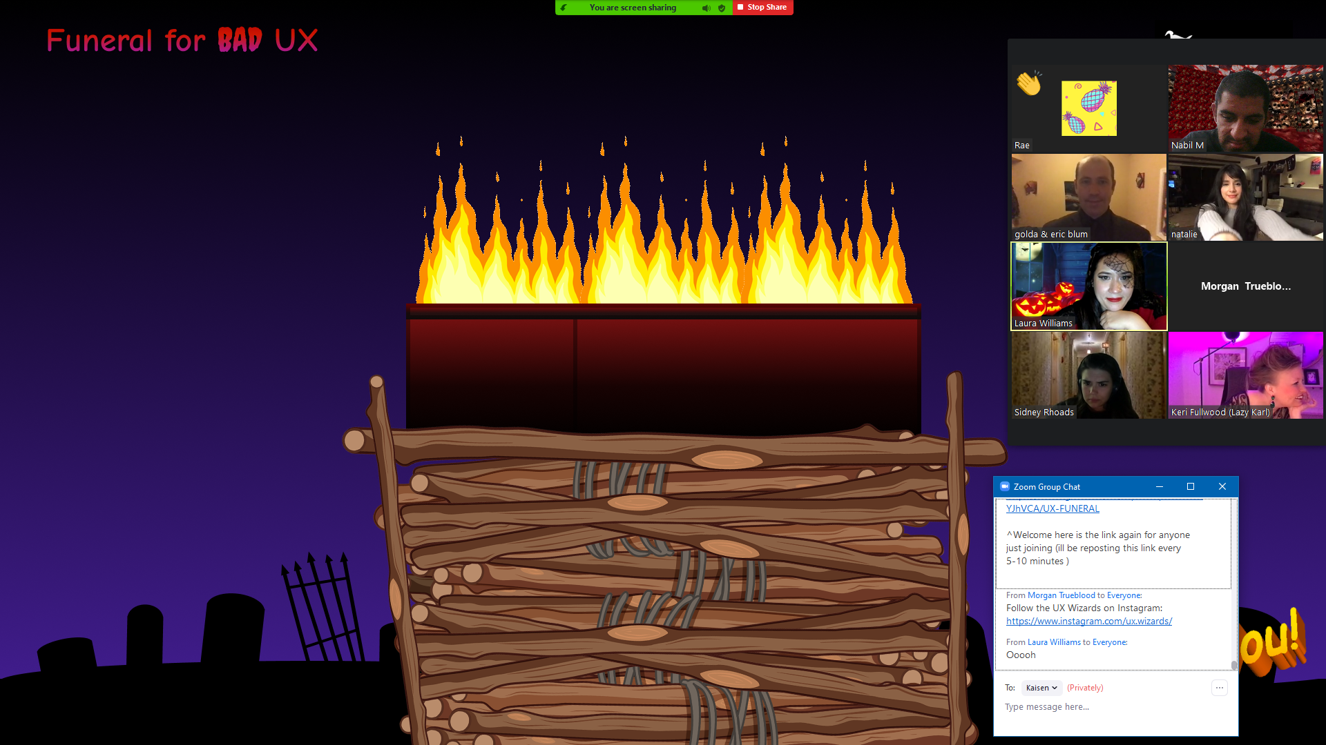 Bad design always makes people laugh and I wanted to create an interactive experience where others can share their favorite examples of crappy design! Hosting a funeral seemed fitting for a Halloween themed ceremony. I came across several Figma parties through design communities. Figma parties involve participants working together in Figma to create experiences, play games, or make designs. After running this idea through the UX Wizards, they made the magic happen by discussing logistics and setting up the event through Meetup.
