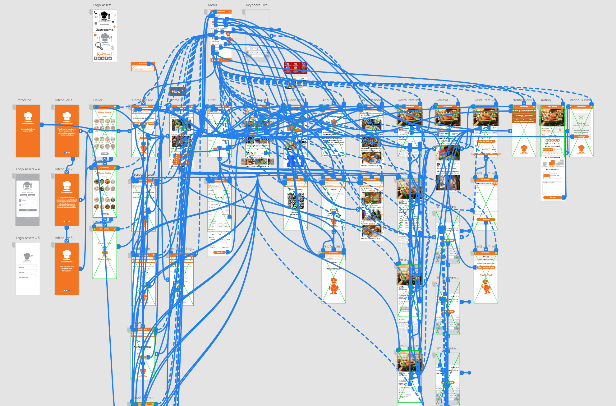 Final version of the prototype showing how all the pages and artboards are linked. Here are some user flows for the app: