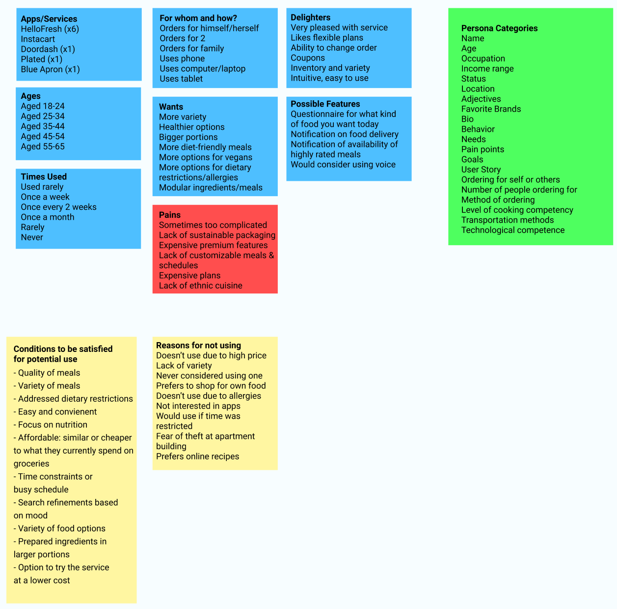 We performed a competitive analysis of HelloFresh, Instacart, and Blue Apron and sent a Google Forms user survey.