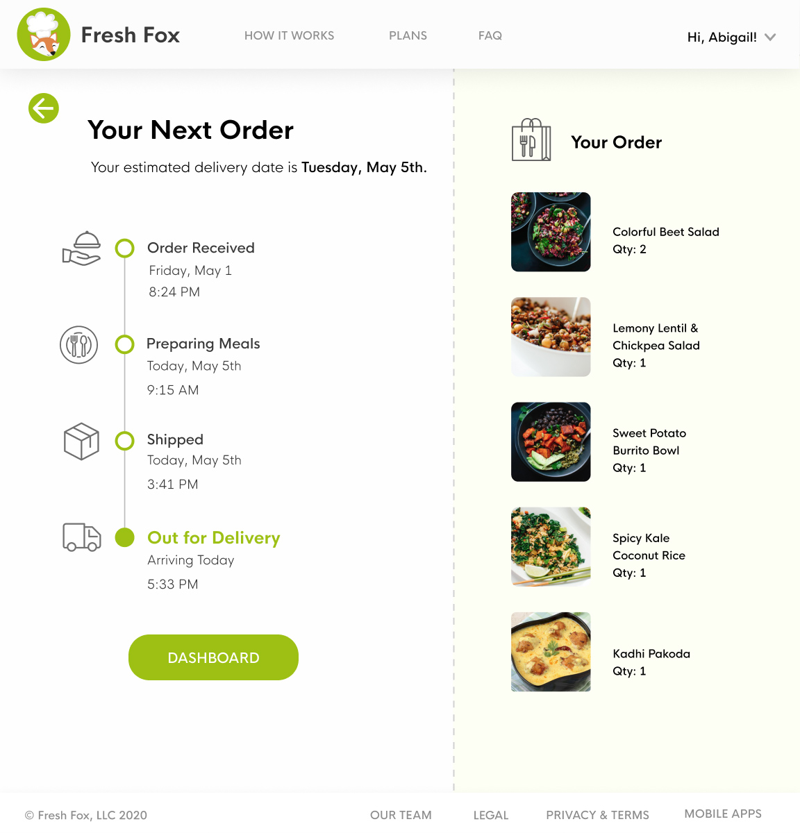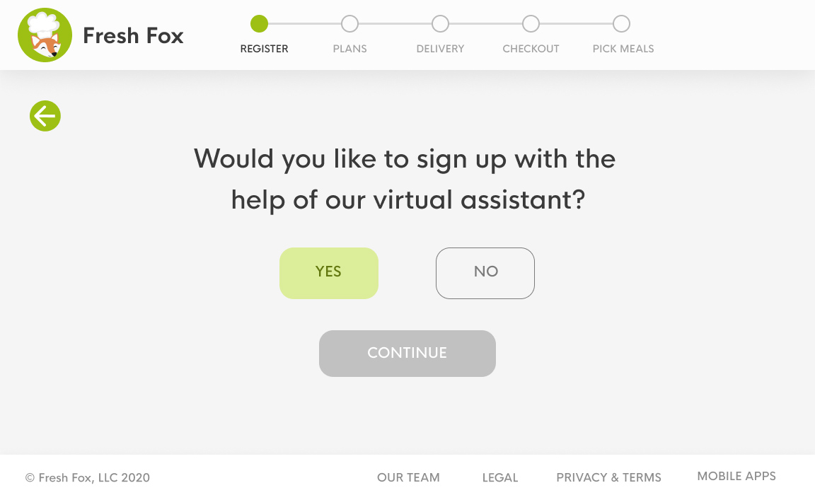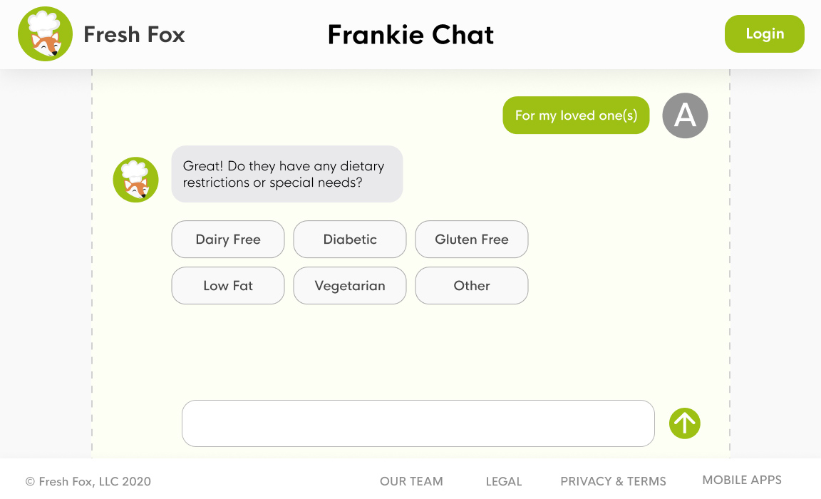 Solution Fresh Fox delivers meal kits to the elderly and features a virtual chat assistant to help users with onboarding and ordering.
