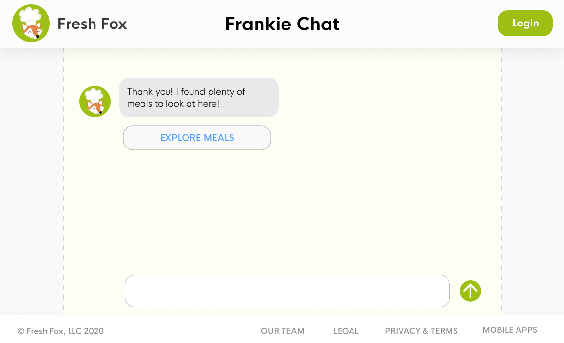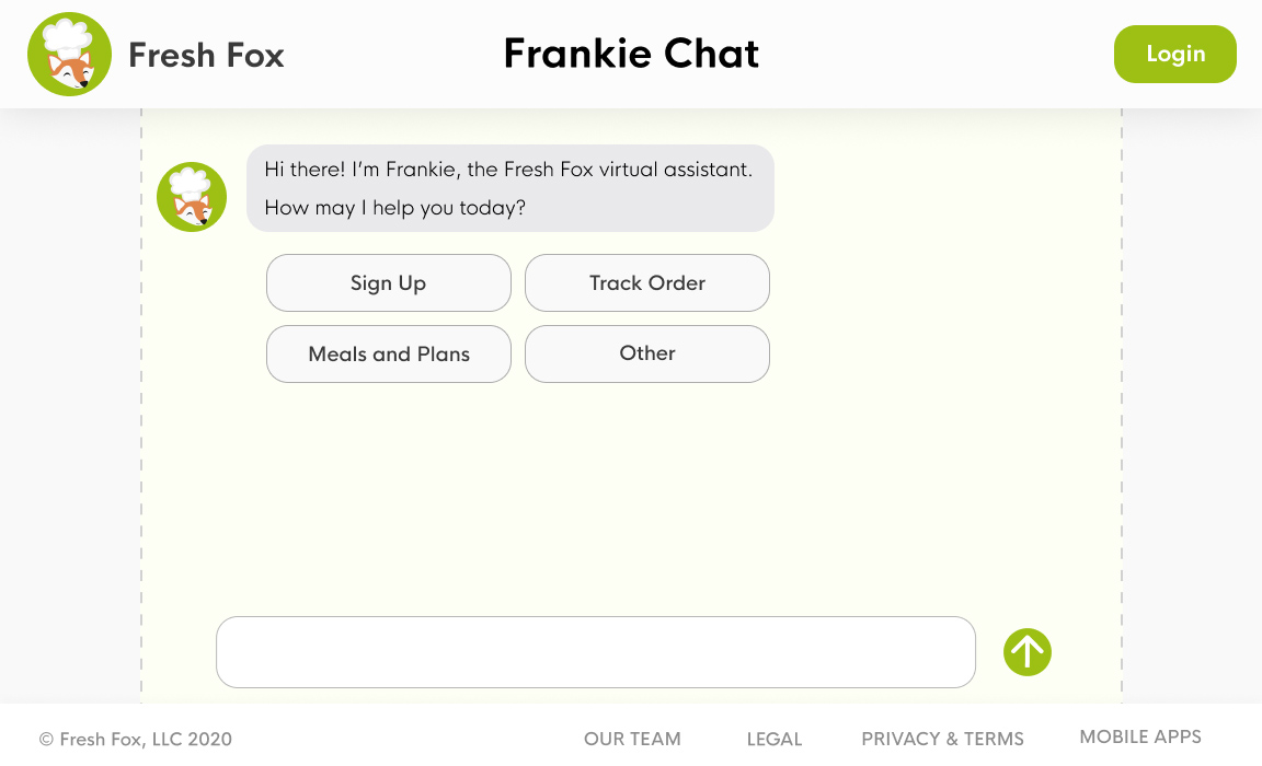 We created Frankie Chat, an AI-powered chatbot who helps users with onboarding, meal selection, and order status.