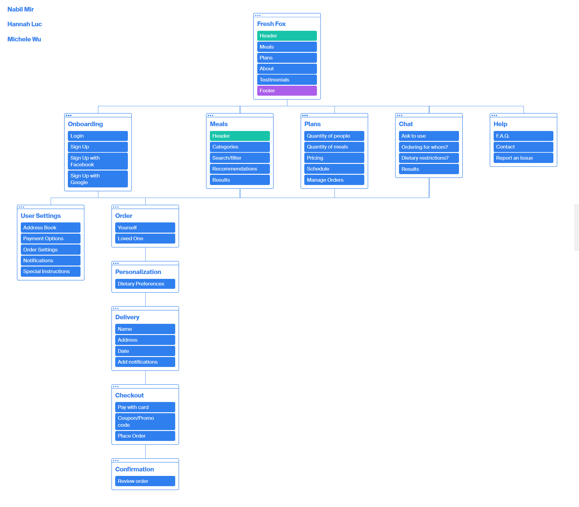 Fresh Fox low fidelity wireframes