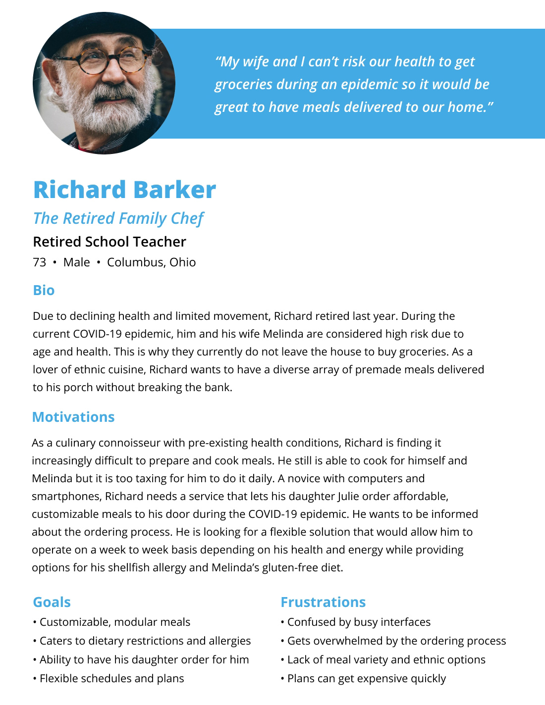 Richard is a high-risk senior who wants meals delivered home.