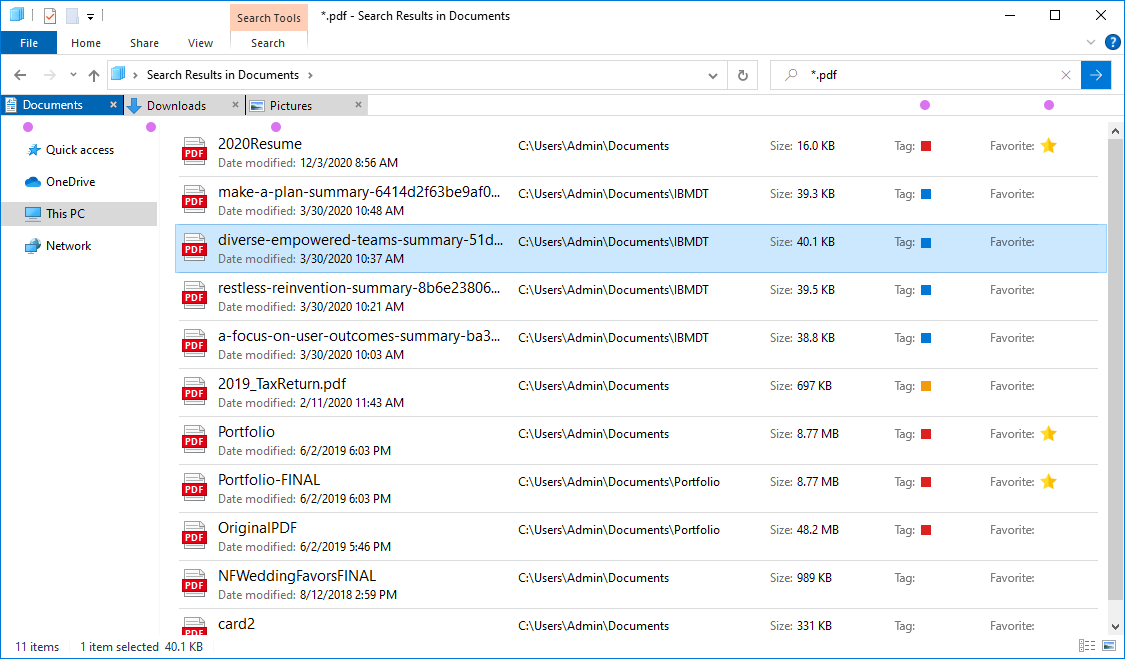 Solution Windows File Explorer: faster searches, tabbed windows, and file tagging by color.